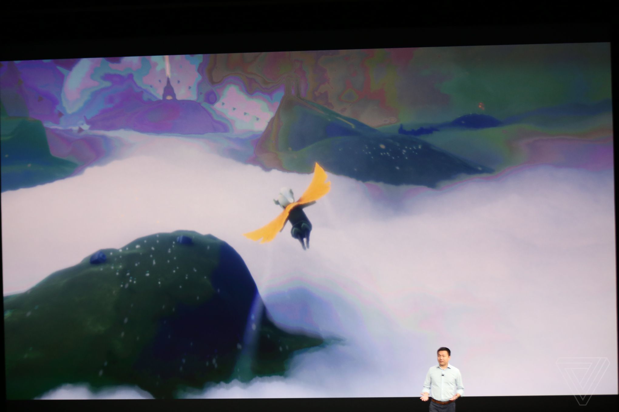 Ore 19:53 Jenova Chen, CEO di thatgamecompany, sul palco per mostrare i giochi su Apple TV